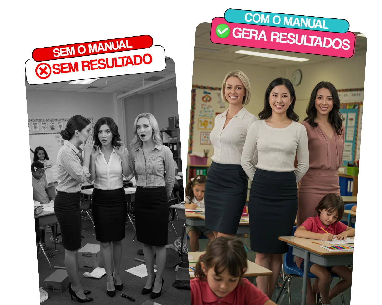 O Manual de Conduta Escolar mostra exatamente como organizar sua equipe, reduzir conflitos e criar um ambiente leve, profissional e produtivo.